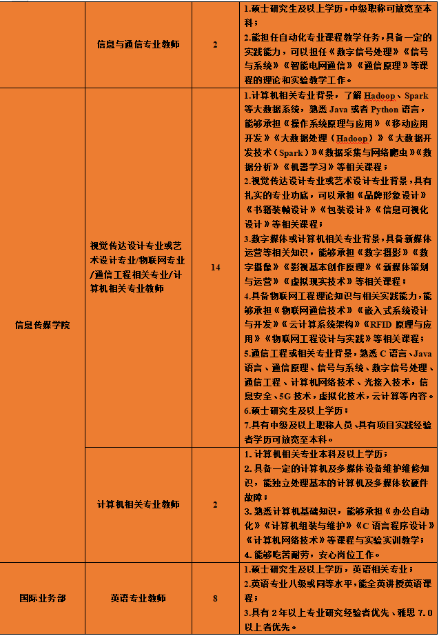 3.初試將采取試講方式進行,具體時間及地點以電話通知為準。試講主要測試應聘者職業(yè)能力及專業(yè)能力。參加試講人員必須攜帶畢業(yè)證書、學位證書、身份證、職稱證等相關材料,未攜帶者取消考試資格。